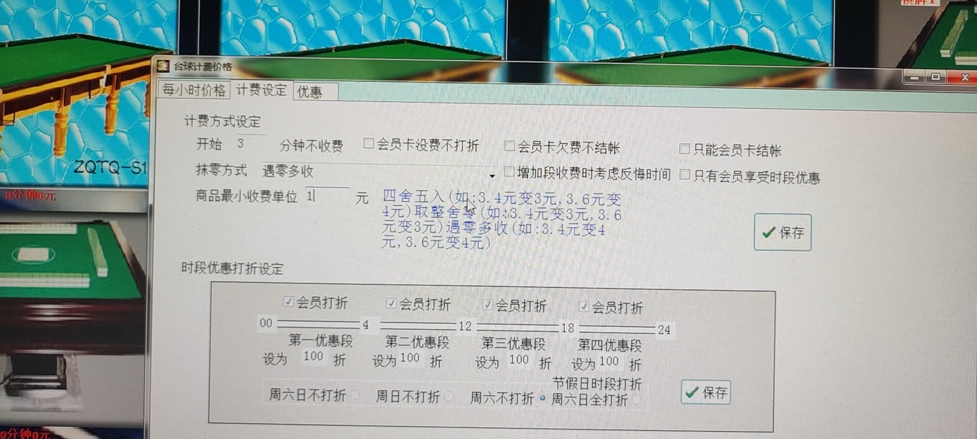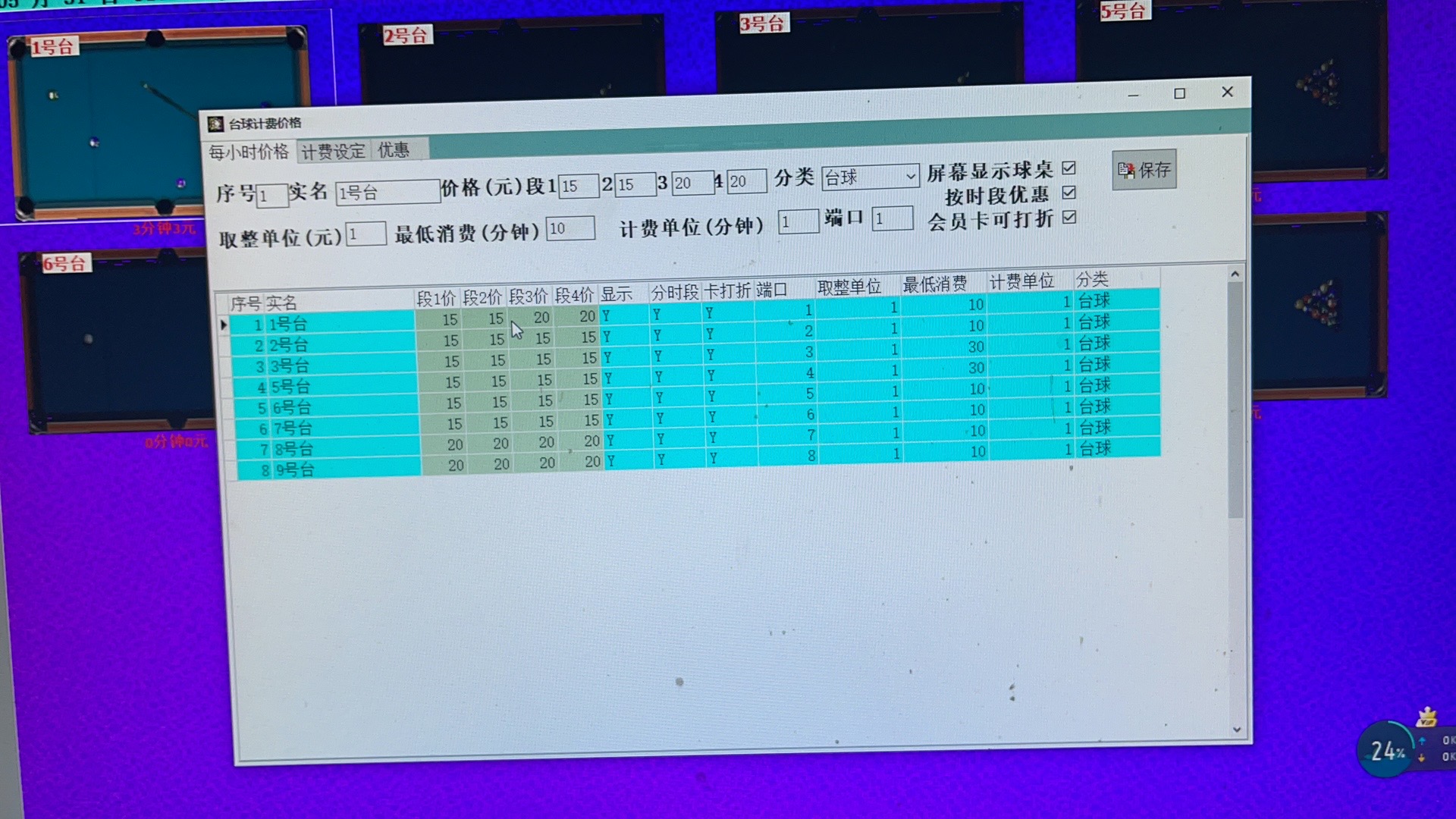 点击进设置->台球计费价格,在每小时价格里每个台有4个价格,这里和2021版不同,四个价格分别对应4个时段。
